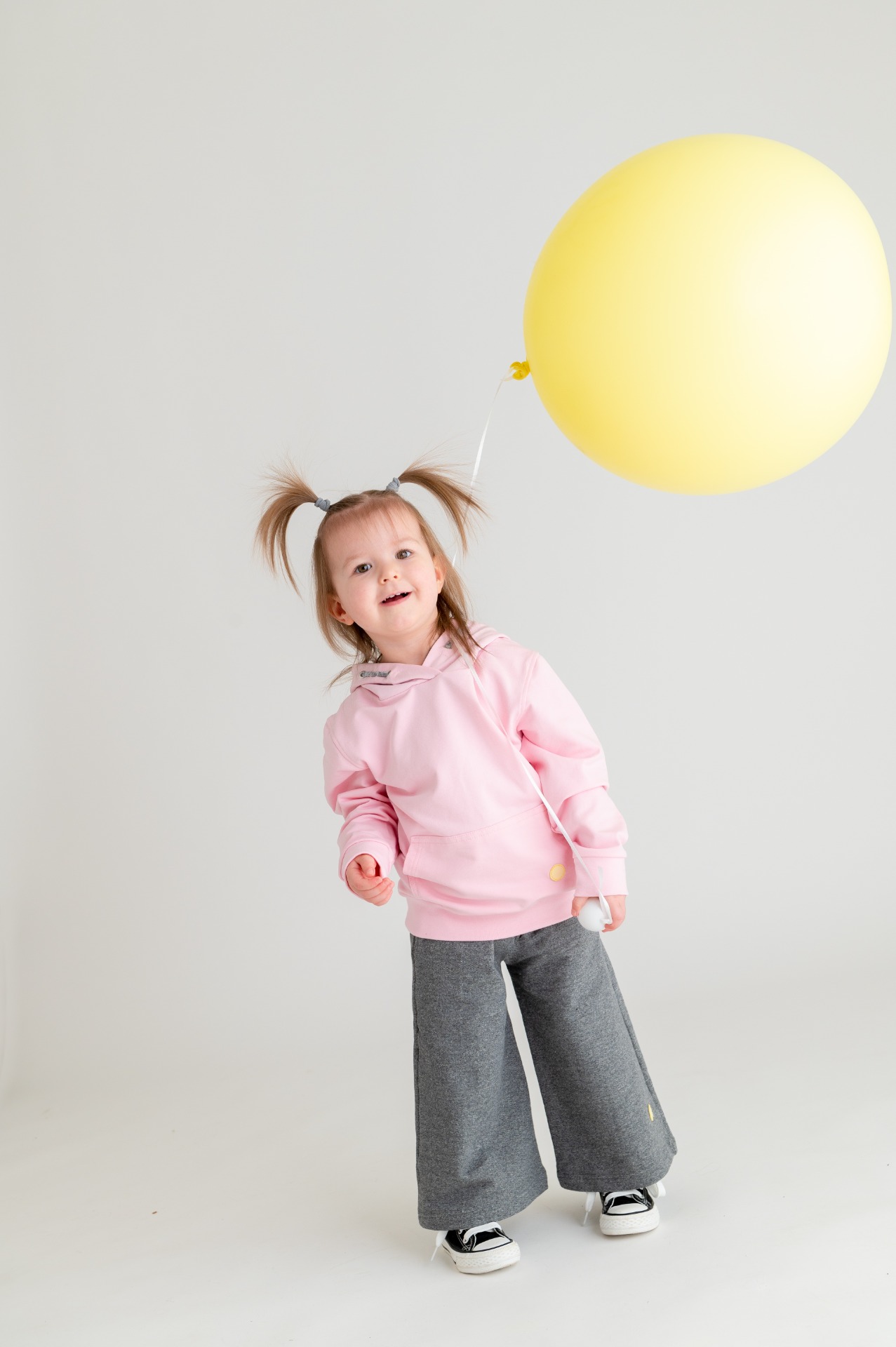 Leveälahkeiset collegehousut kuminauhavyötäröllä ja sivutaskuilla.